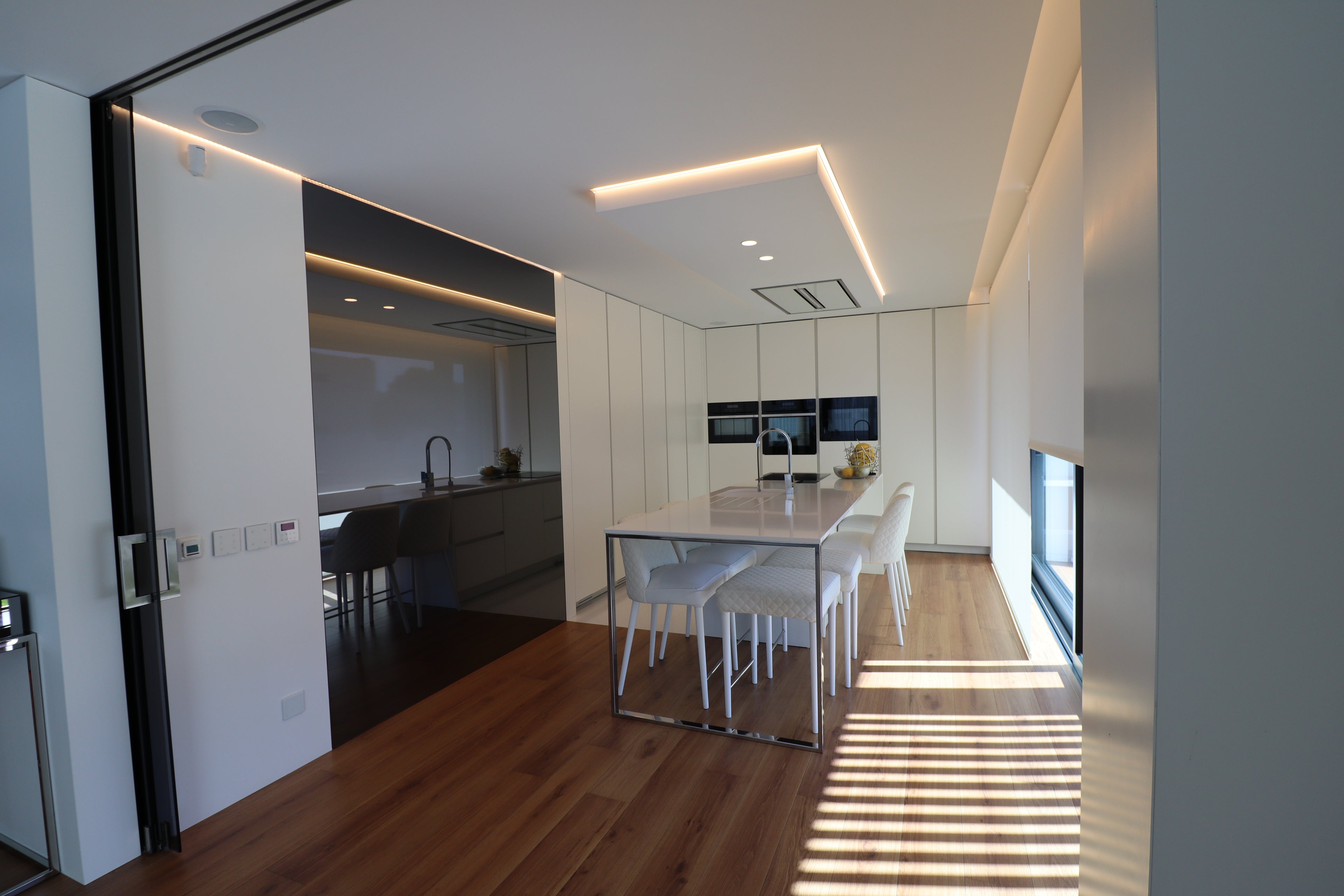 O conceito foi também trazido para o interior, criando um jogo de sombras e luz, tanto natural como artificial, criando um design orgânico que fala por si.