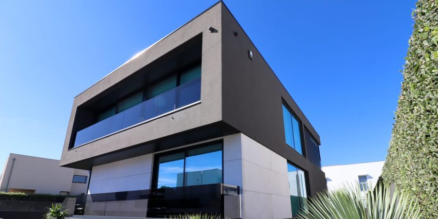 Lusco Fusco porque esta moradia representa a harmonia perfeita entre o escuro e a luminosidade. O maior desafio deste projeto consistiu em criar, através de texturas e acabamentos uma fachada dinâmica, apesar das restrições impostas pelo regulamento do loteamento onde se insere.